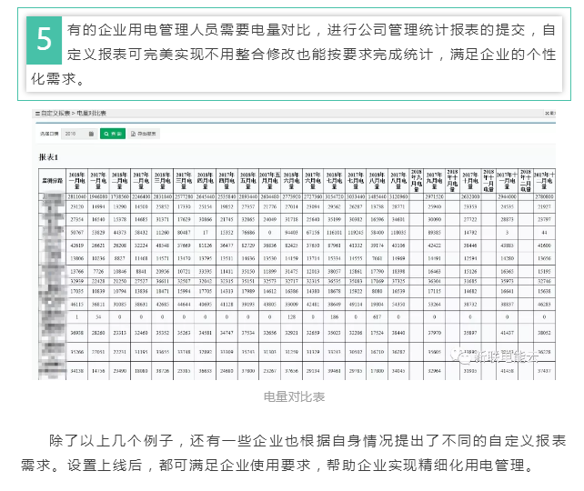 當(dāng)客服接到以上這些反饋后,會與各企業(yè)進(jìn)行耐心溝通。這時,有的企業(yè)就需要增加自定義報表,方便企業(yè)自行進(jìn)行統(tǒng)計。如公司電費、各部門電費、電量對比表、日負(fù)荷情況等報表。